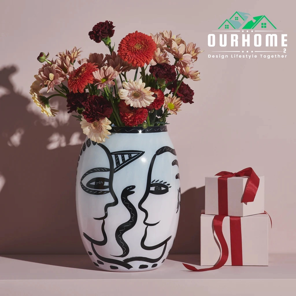 The Caramba Vase from ourhome2 is a striking artistic piece that blends modern design with bold artistry. Featuring hand drawn faces in black on a smooth white ceramic base, it is a unique addition to any home. The vase’s round shape and elegant details make it ideal for holding flowers, plants or simply as a decorative statement piece.