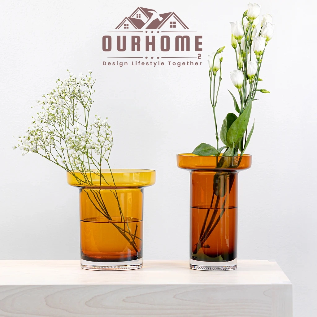 The Limelight Rose Vase is a study in warmth and simplicity. Its amber-tinted glass catches light gently, creating a soft glow that changes throughout the day. The shape is clean and thoughtful—designed to frame flowers without competing with them.